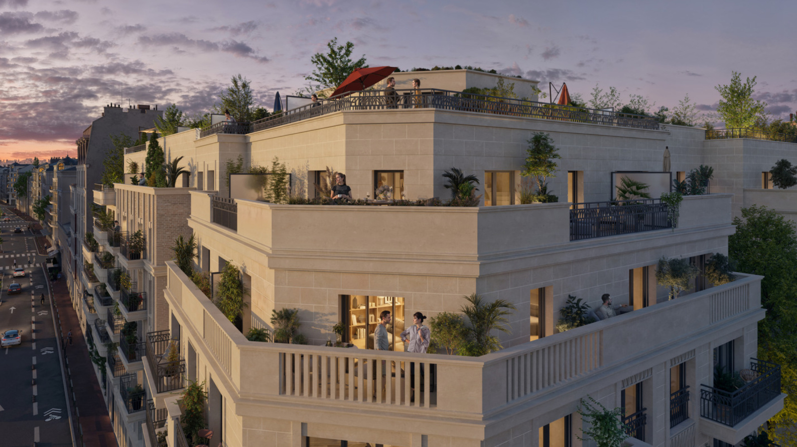 Une composition savante, aux écritures architecturales plurielles. Un cœur d’îlot verdoyant et apaisant.