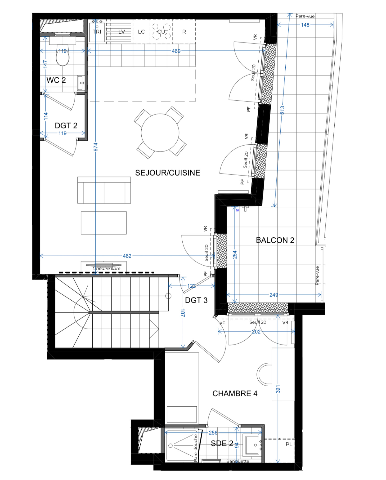 Un appartement de 5 pièces au 5è étage, offrant : au 1er niveau : une entrée, une chambre avec salle d’eau, un dégagement nuit, deux chambres, une salle de bains avec un wc, un beau balcon. Au 2è niveau : un beau séjour avec cuisine ouverte donnant sur balcon, un dégagement, une chambre avec salle d’eau, un wc indépendant. Un toit terrasse avec une zone végétalisée est à découvrir au dessus de ce lieu de vie d’exception.