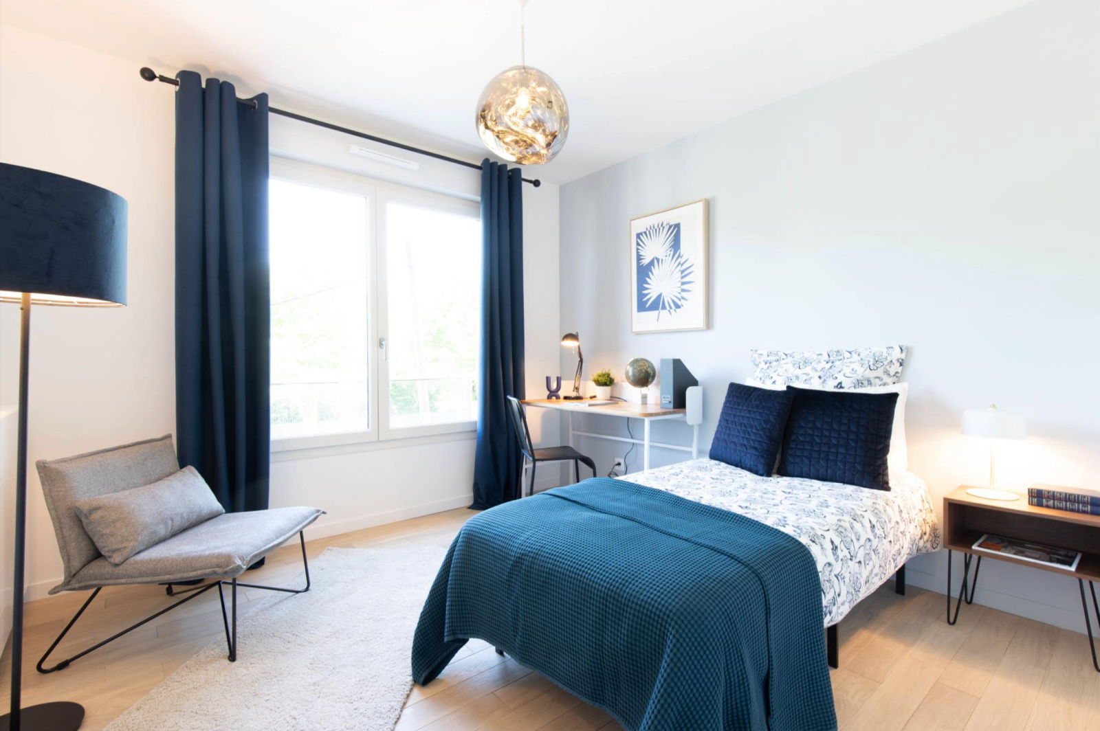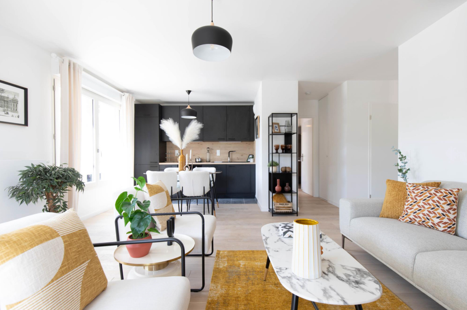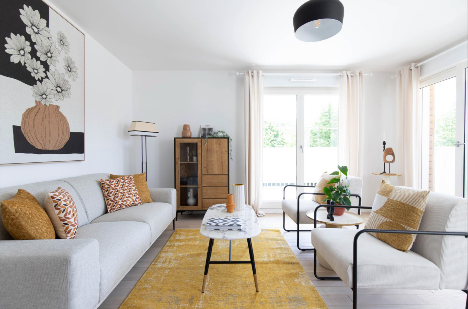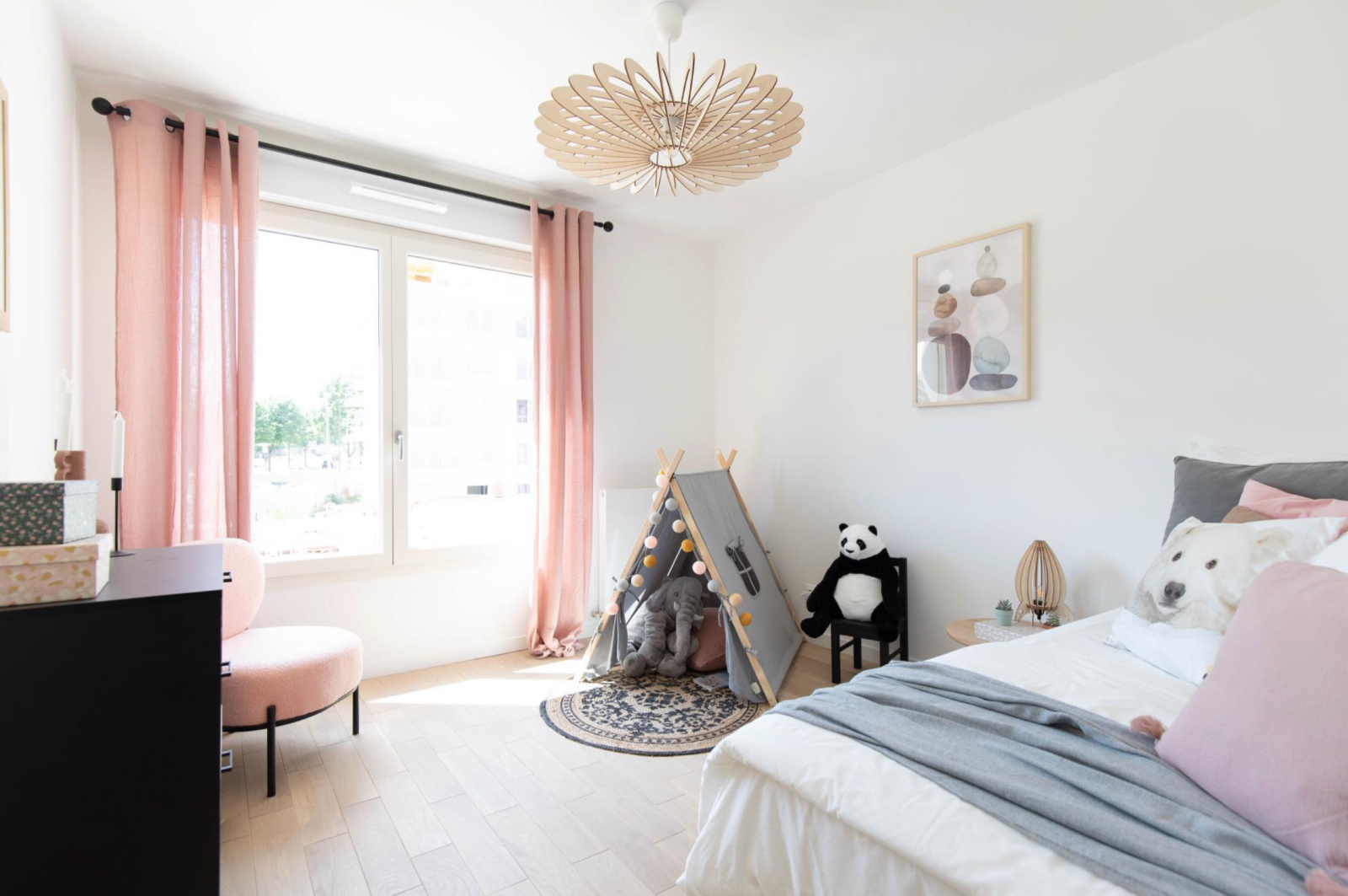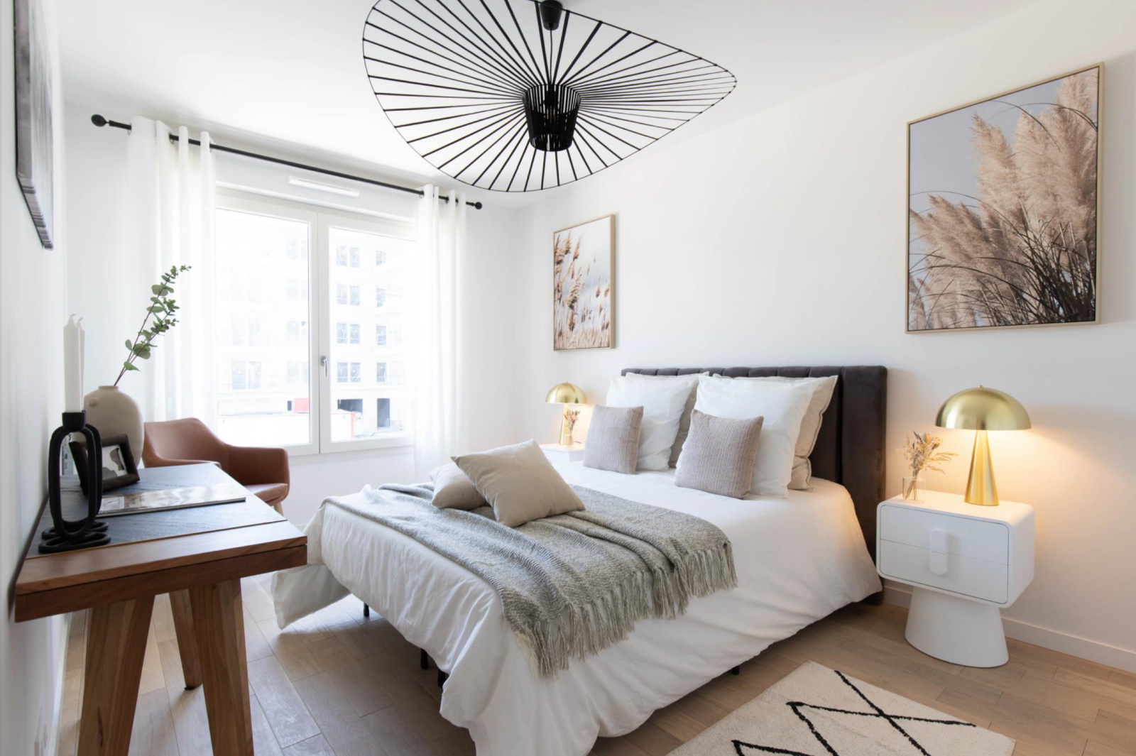 Photos non contractuelles d’un appartement témoin décoré, exemple d’aménagement possible.