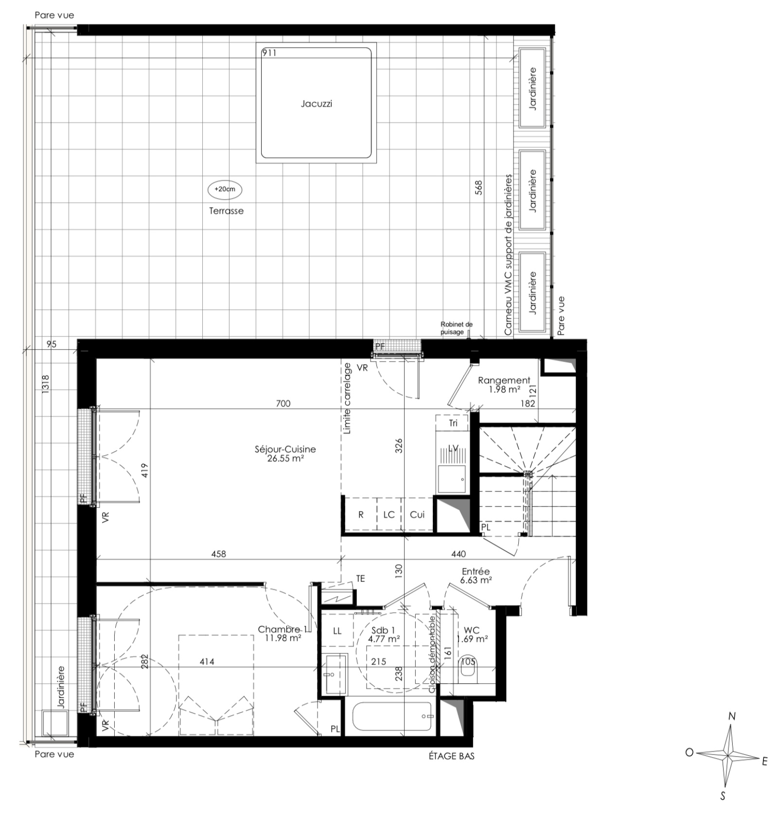 Appartement en étage élevé avec terrasse, bénéficiant d’un plan sans perte d’espace.
