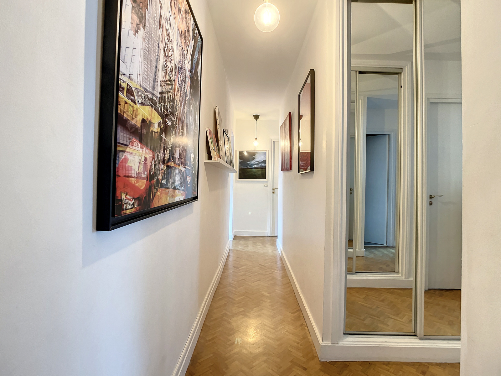 Un magnifique appartement comprenant: une entrée avec placard, un beau double séjour exposé sud-ouest donnant sur balcon, un salon de lecture (4è chambre), une cuisine dînatoire équipée, un dégagement nuit avec nombreux placards, 3 chambres, une salle d'eau avec wc, une salle de bains, un wc indépendant.