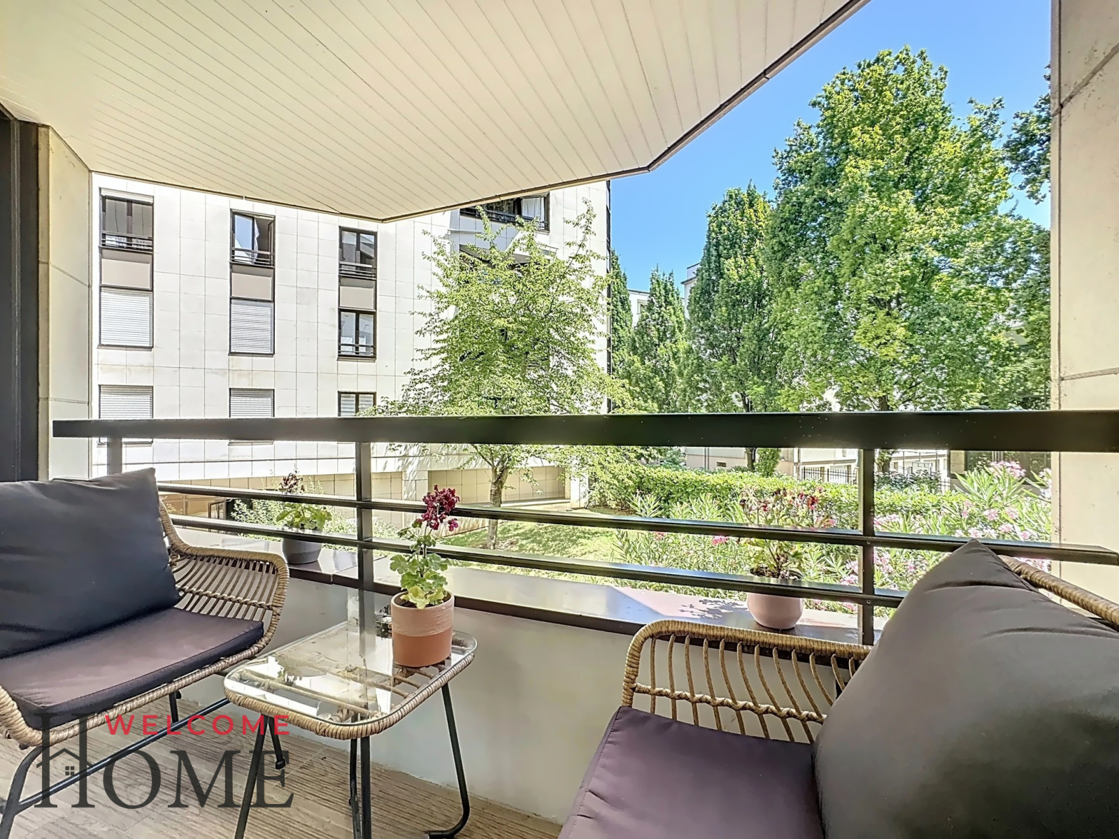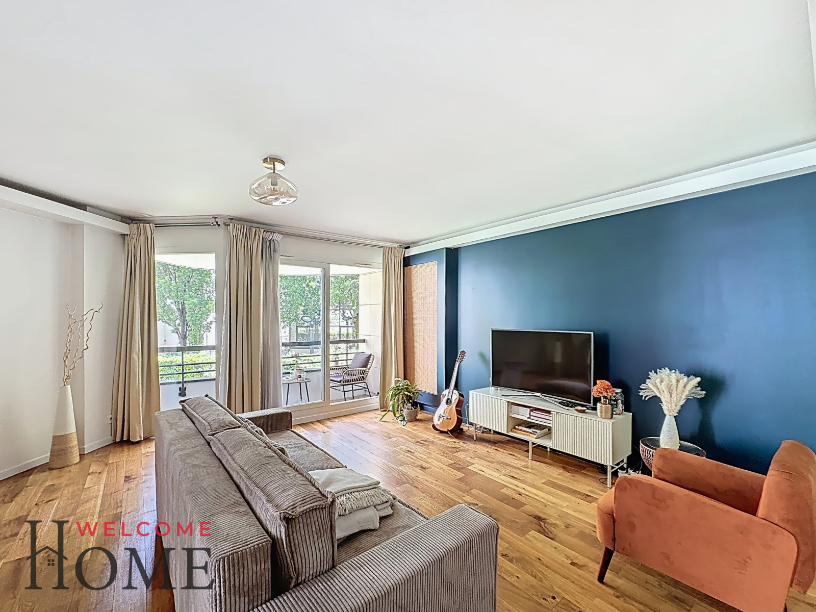 Le double séjour lumineux s’ouvre sur un balcon, offrant un espace idéal pour vos moments de détente ou pour recevoir en toute convivialité.