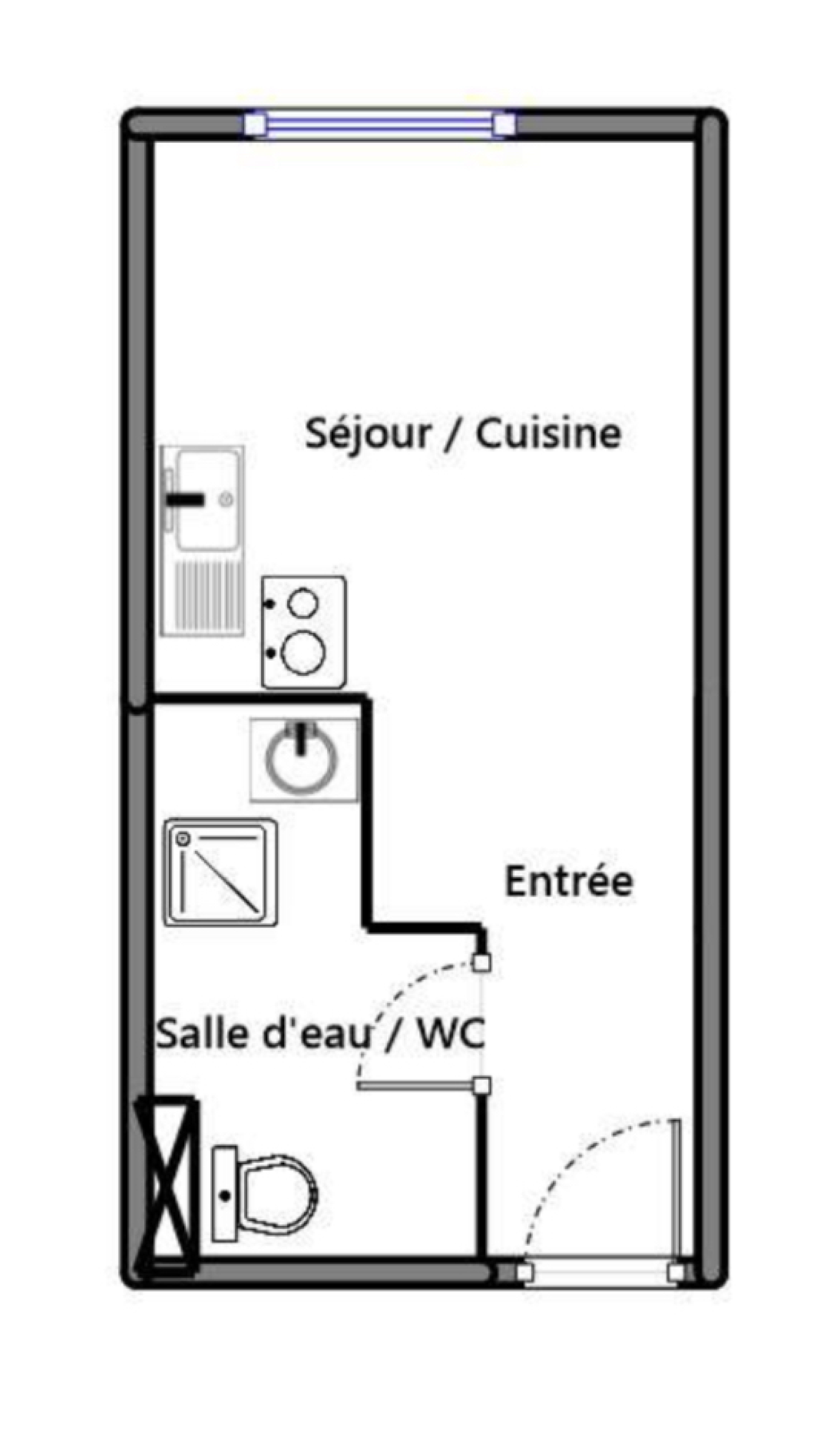 Au rez-de-chaussée, le bien se compose d’une entrée avec rangements, d’une pièce de vie de 11,33m2 Loi Carrez avec cuisine ouverte aménagée-équipée, d’une salle d’eau avec wc.