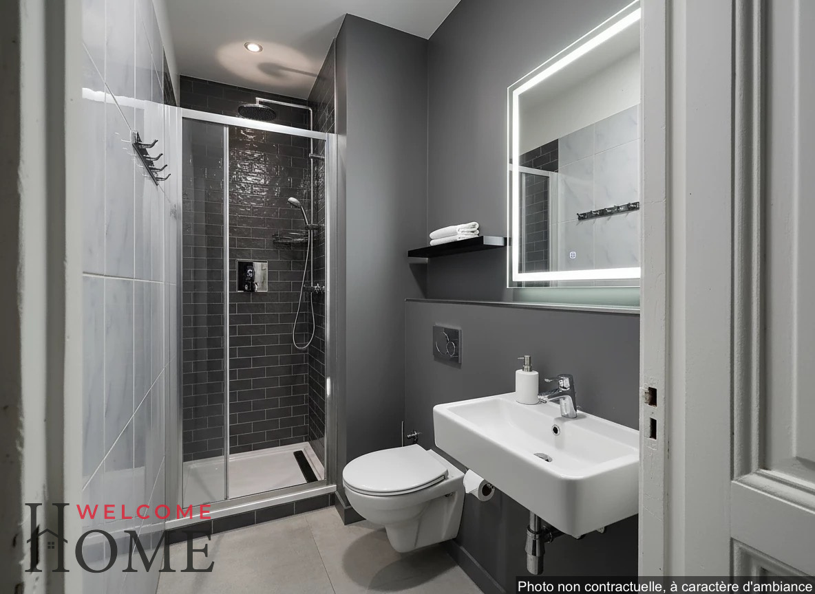 L’appartement se compose d’une belle pièce de vie, parfaite pour aménager un coin salon confortable et un espace de travail inspirant. Grâce aux projections en home staging virtuel, vous pourrez visualiser le potentiel de cet espace : imaginez un intérieur moderne et chaleureux, avec des touches de décoration qui reflètent votre personnalité. Que ce soit un coin lecture cosy, un espace de travail fonctionnel ou un salon accueillant pour vos amis, cet appartement est une toile vierge prête à accueillir vos idées.