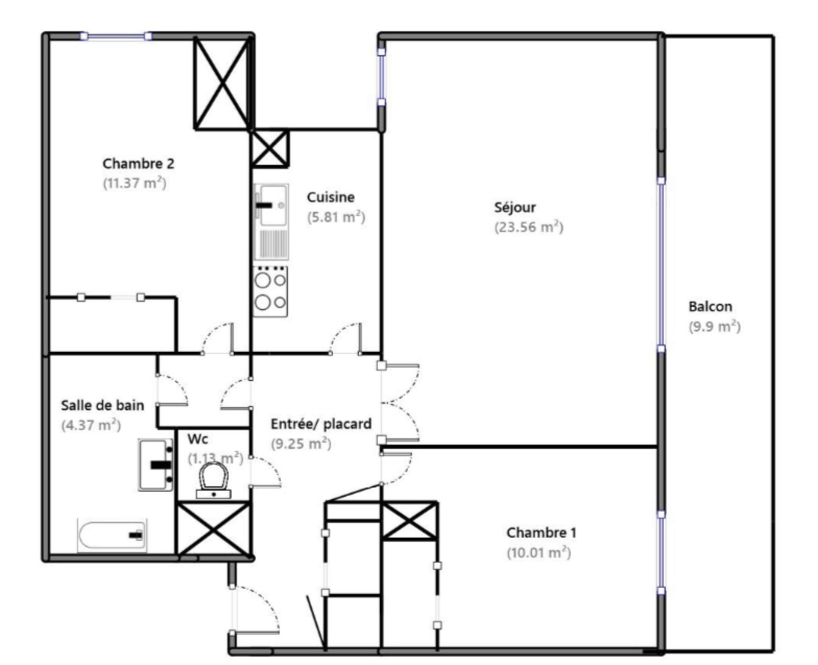Au 3è étage avec ascenseur d'une copropriété de 2007, le bien se compose: d'une entrée avec placard, d'une belle pièce de vie donnant sur balcon, d'une cuisine indépendante (possibilité de l'ouvrir sur le séjour), de 2 chambres avec placards, d'une salle de bains et d'un wc indépendants.